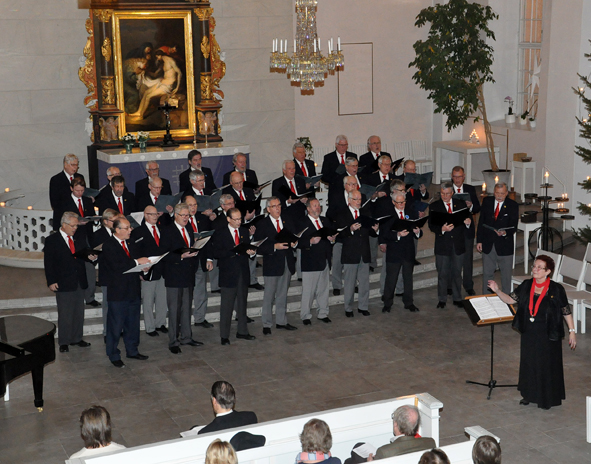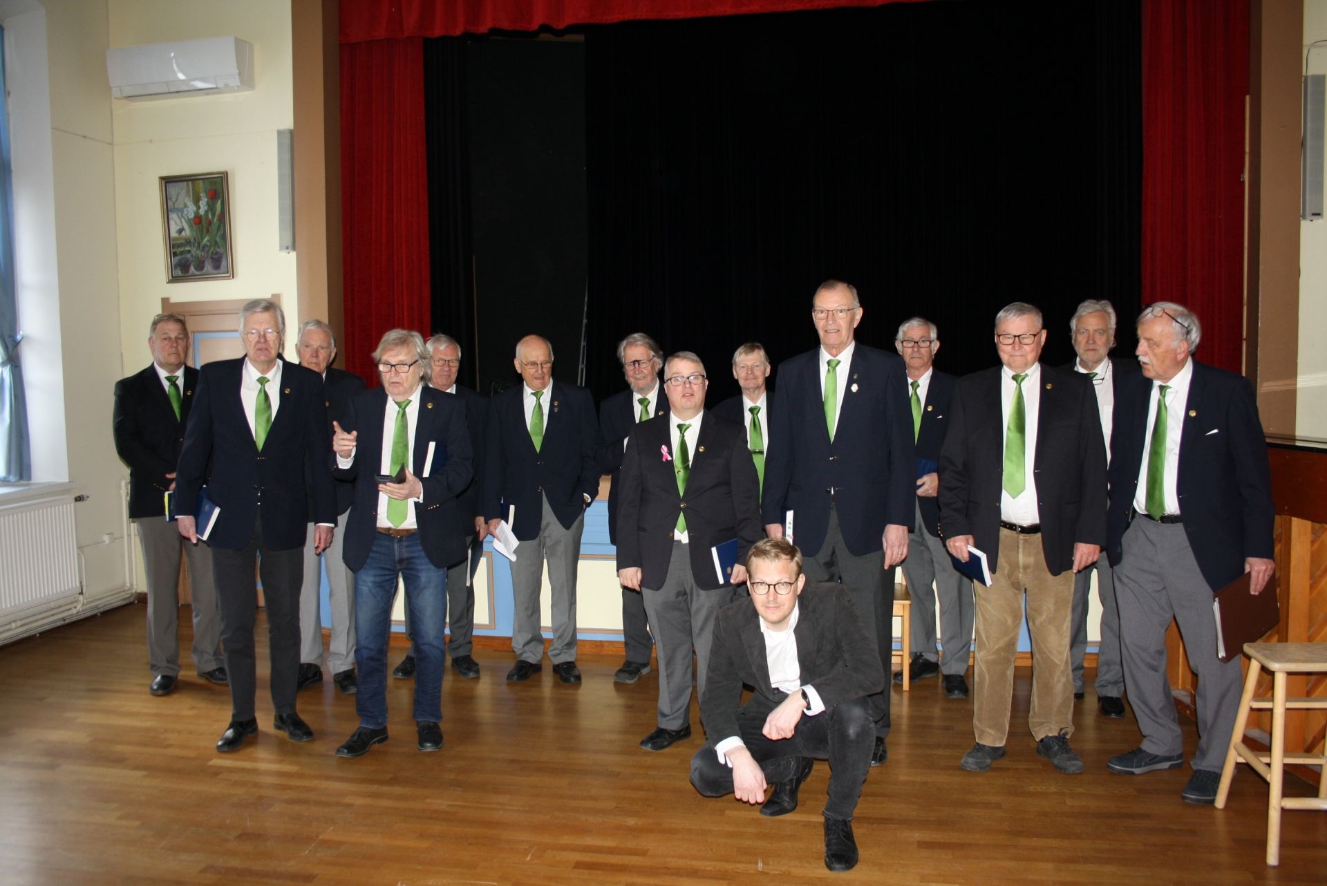 Ekenäs Manskör har ett 40-tal medlemmar. Ett drygt 30-tal deltog i körlägret och konserten på Söderlångvik gård på Kimitoön den 12 april. Kören leddes av Solveig Kronström.