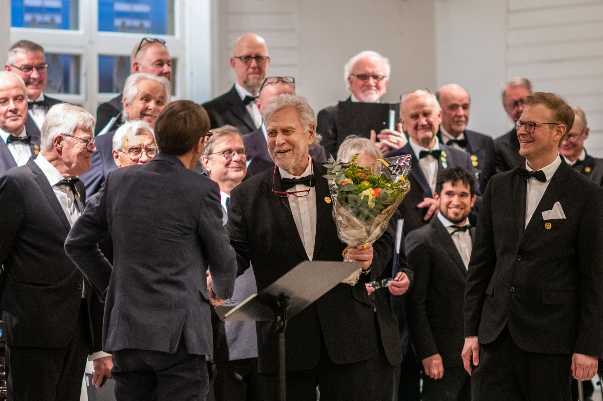 Hangö Manskör, Girls'n Qvinns Cajorna, Manskören Raseborg, Västnyländska kammarkören, Västra Nylands Sång och musikförbund, Kören 30 Karar, Finlands Svenska Manskörsförbund och Folke Gräsbeck uppvaktade 100 åringen.